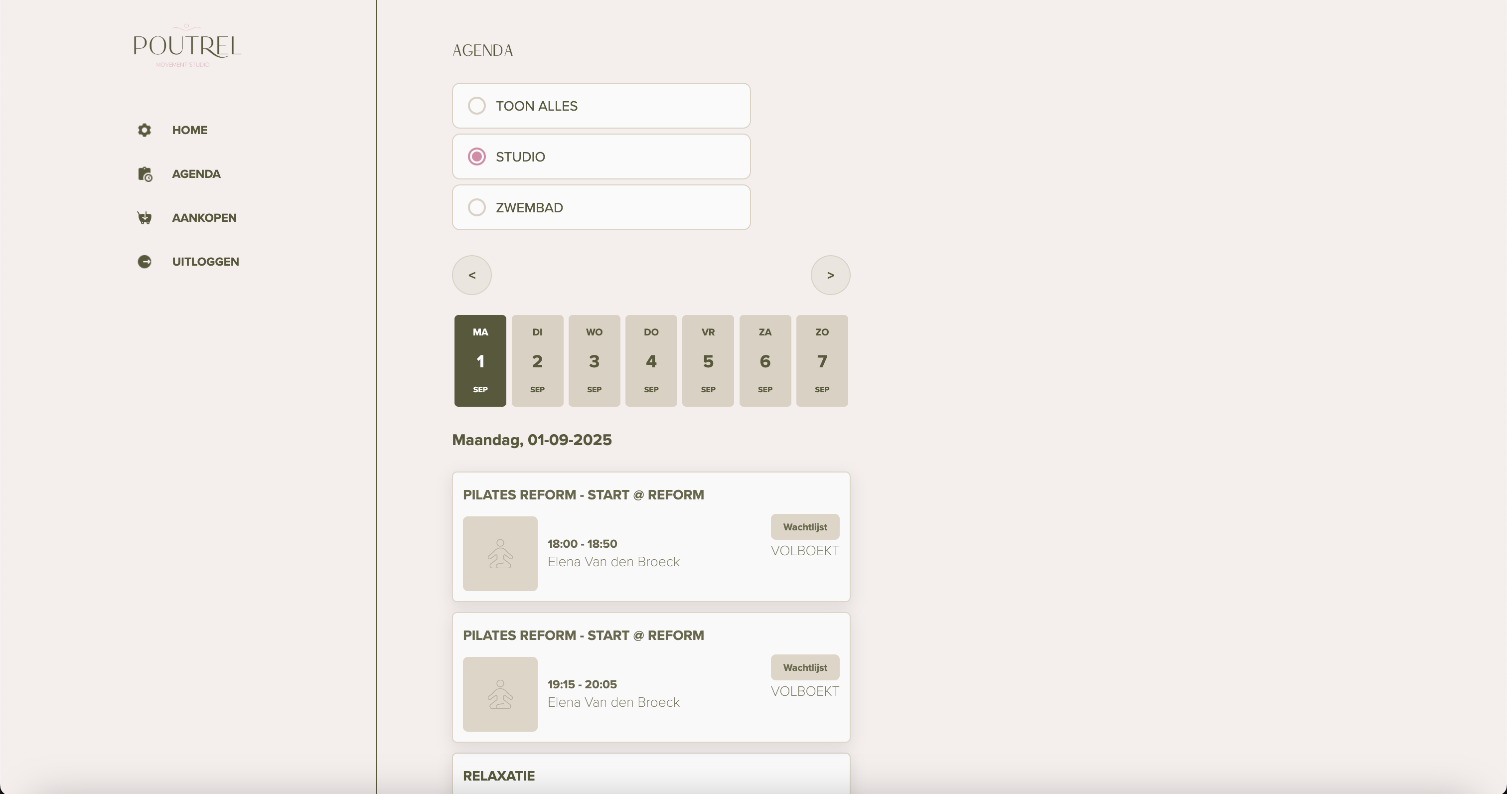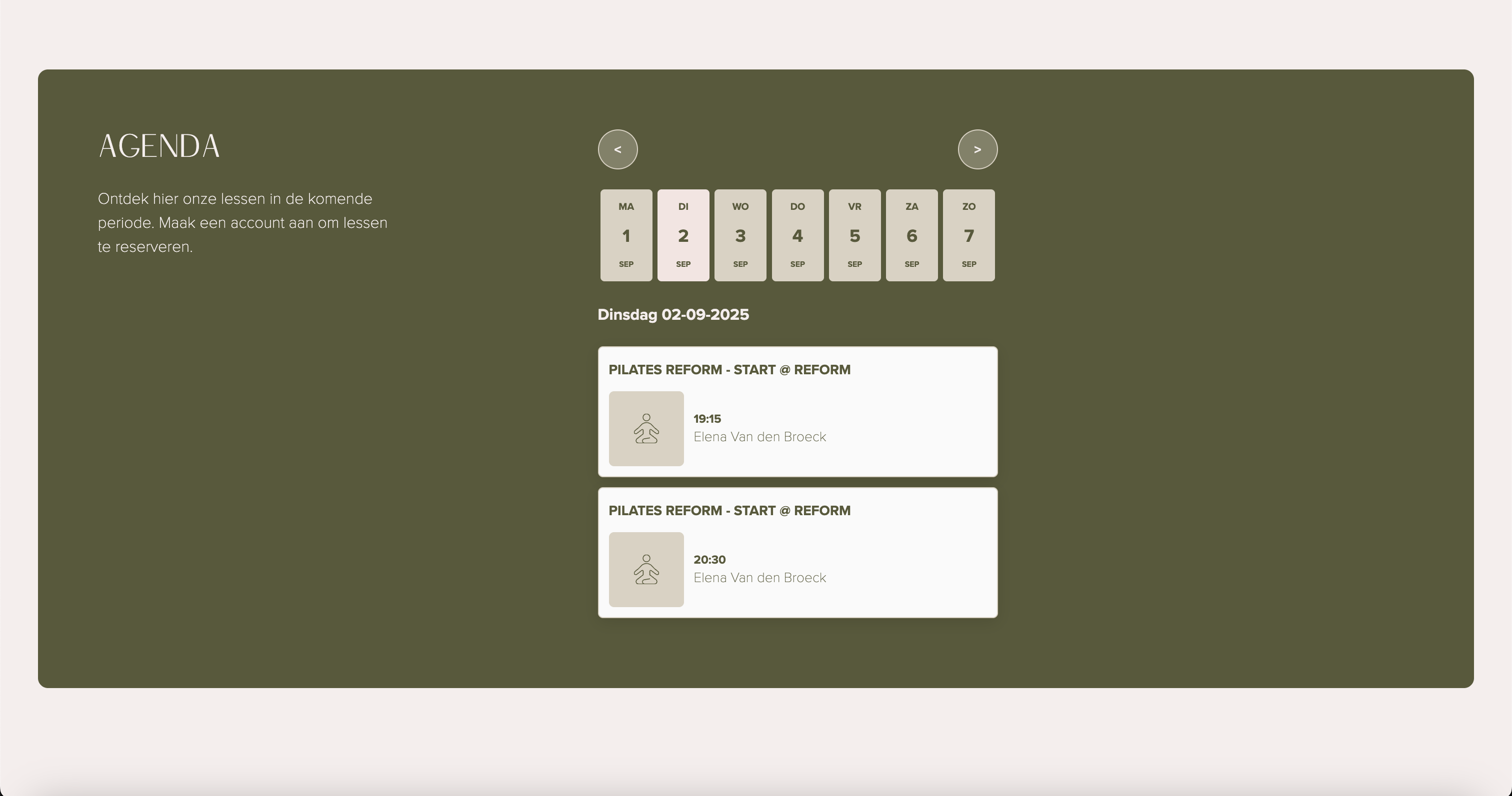 Via le site web, les clients peuvent planifier leurs réservations rapidement et facilement, aussi bien sur ordinateur, tablette que smartphone. La plateforme est entièrement optimisée pour le mobile, ce qui permet aux utilisateurs de parcourir l’agenda en toute fluidité et de réserver immédiatement depuis n’importe quel appareil.